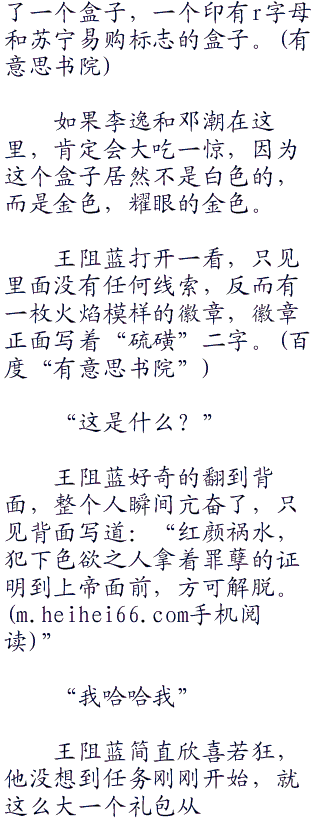 “看看,线索!打开第一个盒子就找到的线索。”邓潮把纸条对着摄像头嘚瑟道:“李逸,李宸,联盟是吧,捆我是吧,看我等会儿怎么收拾你们!还有郑凯,居然敢怀疑我纯洁的心灵,给我等着;程赫,说好了结盟的,居然还找李宸,我要让你尝到背叛者的下场;baby,有线索居然不给我看,我可是对长啊,你完了;阻蓝,阻蓝你反正你完了!”