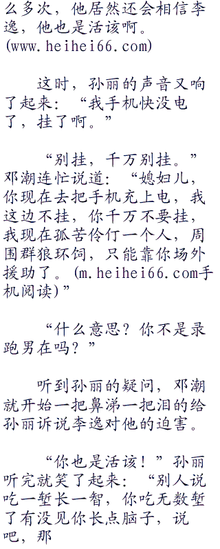 听到自己媳妇儿这话,邓潮真是快哭了,明明已经被李逸坑了这