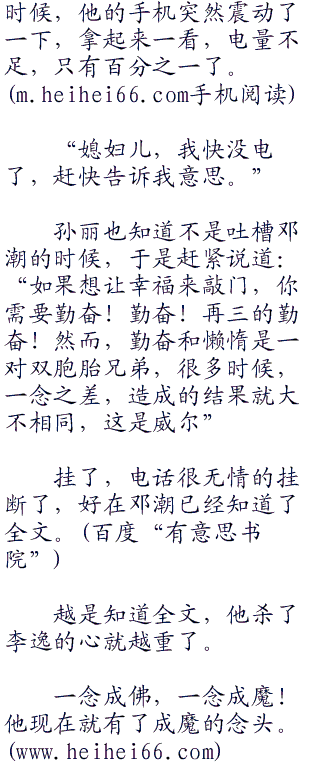 邓潮各种诅咒李逸的时候,找到了一个沉甸甸的盒子,里面有一部手机和一个纸条:你拥有拨打一次电话号码的机会。