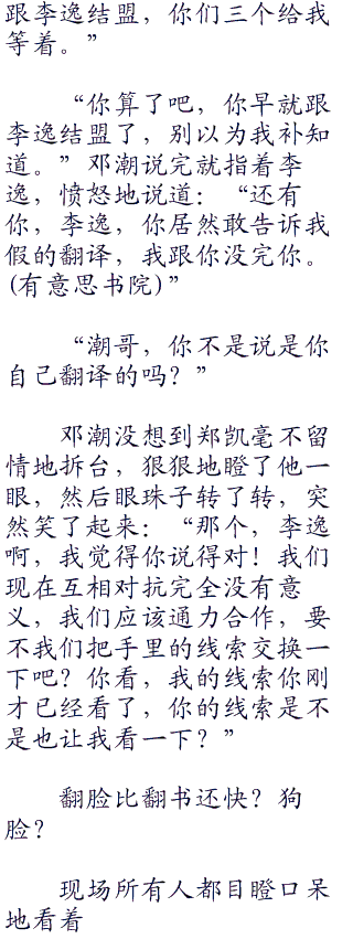 李逸还准备继续劝说什么的时候,baby突然把徽章塞到他手里,认真地说道:“没问题,我相信你。”