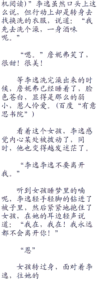 其实李逸完全想错了,或许最开始詹妮弗不愿意公布他们的关系是因为怕影响星途,但现在绝对不是,对于一个自己深爱的男人,星途什么的已经显得不那么重要了。