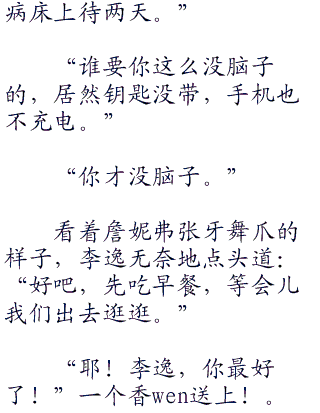 李逸正准备发火的时候,却听到詹妮弗说道:“我就想看看你,陪你说说话。”