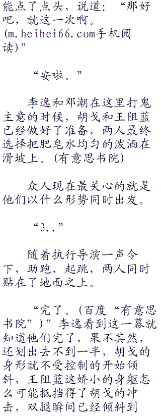 这时,王阻蓝向执行导演问道:“我们是一个个的下去还是一起下去?”