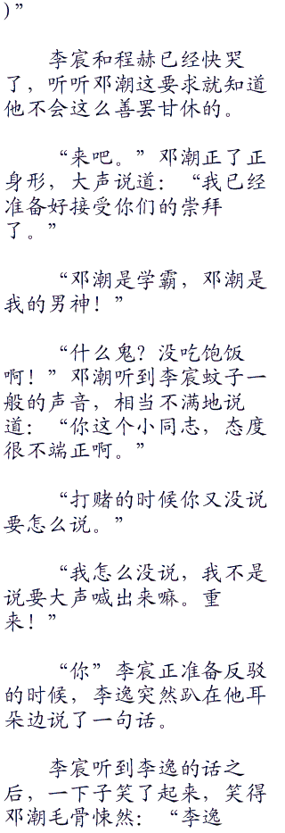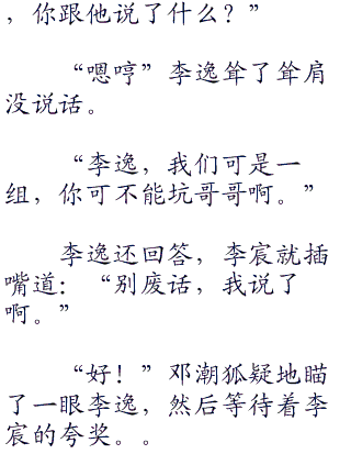 邓潮此时化作了李宸的坚定支持者,什么赌注对于他来说都是小意思吗,程赫是不是天才都改变不了他学霸的本质,至于笨蛋李逸神马的,跟他有半毛钱关系嘛,李逸要怪也只能怪程赫,怪不了他,是不!