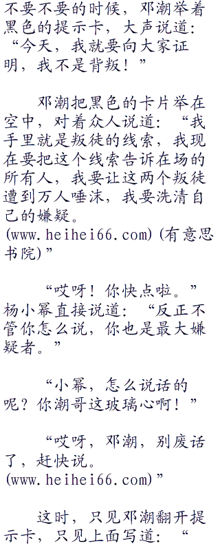 “我?我要叛徒的。”邓潮毫不犹豫地说道。