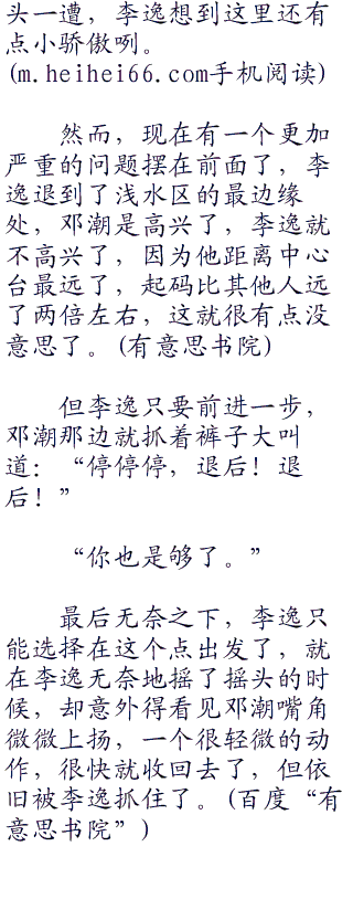 众人全都进入了水中,李逸这个时候真的有点搞不懂节目组是怎么想的,刚才不就是进水了“零四七”嘛,干脆就直接进行第二个游戏得了,这下回去洗个澡,换个衣服,然后又得耽误时间,如今已经快十二点了,这一闹又是一两点才能吃中饭了。