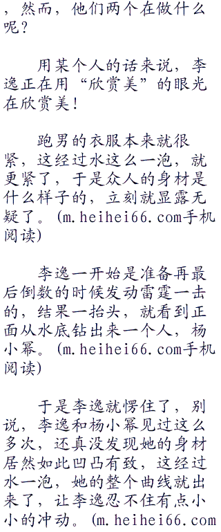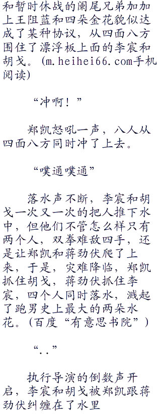 不过,这下程赫终于是成功把郑凯拉入水中,然而,这还没有完,两人依旧纠缠在一起,阑尾兄弟的世界一般人果然是无法了解。