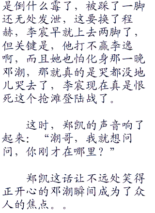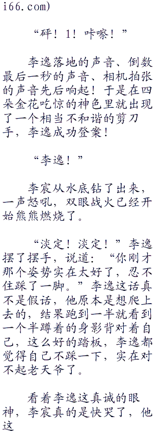 李逸摇了摇头,这个游戏就是冲得越快的死得越快,果不其然,郑凯半个身子还在上面的时候就被程赫死死地扯住了腿。