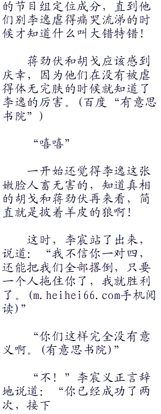 看郑凯这快哭了的表情就知道李逸在跑男里那些绚丽的格斗技巧和满场乱飞的跑酷技能不是节目组故意做出来的,他们都是经历过无数综艺节目的,知道综艺节目里面有角色定位这一说,很多节目为了漏点,会故意把每个嘉宾定位成某种状态,像快本里的杜海滔,天天向上里的钱峰都是此类角色定位,在跑男里也有角色定位,向程赫“猪一样的队友”就是节目组的定位,然而,实际上真实情况是有些出入的,比如说程赫,除了喜欢作死,其实相当鸡贼。