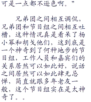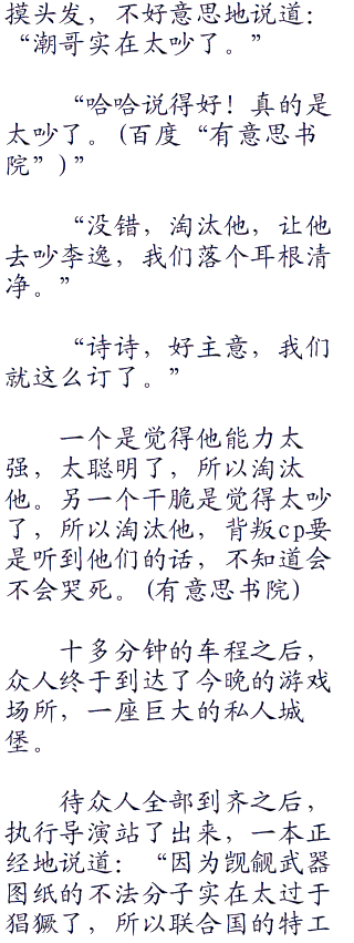 “不装逼不服务斯基!”邓潮毫不犹豫地说道:“你以为“李逸时刻”为什么这么出名啊?那都是他努力装逼的结果,每次他都会装作一副成竹在xiong的样子全盘分析局面,而且脸上总会挂着贱贱的笑容,但是,这一次他全程都没有这么做。”