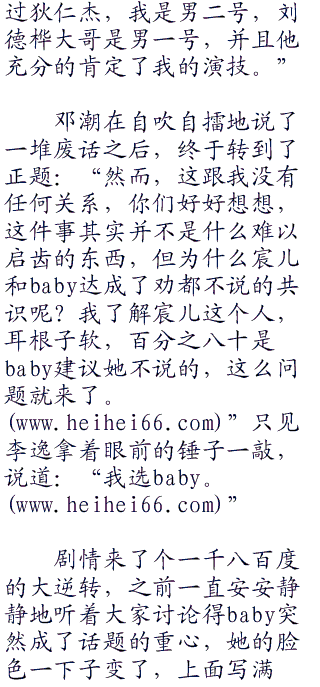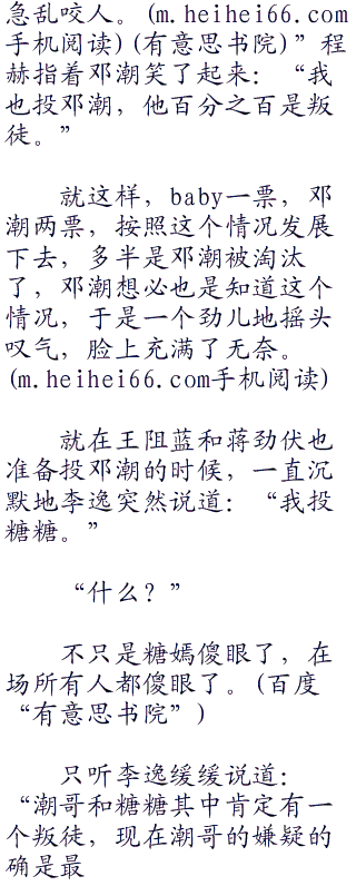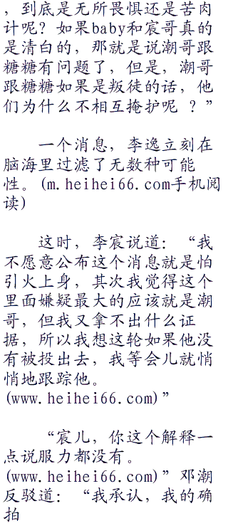 李宸和baby听到糖嫣的话,片刻惊讶之后,面对众人的一致怀疑,最终只能重重地舒了一口气,说道:“糖糖说得没错,我和baby的确是看到了一个很叛徒有关的,很重要的信息。”