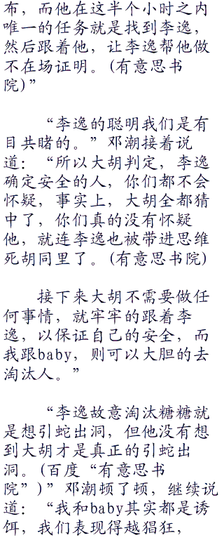 只见邓潮笑着点了点头,说道:“小幂猜得没错,李逸为什么一直想不通,就是因为他跟你们大多数人