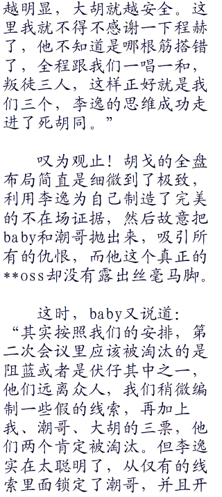 “不对啊!”诗诗叫了起来:“第三个叛徒出现的时候,大胡和我们在一起啊。”
