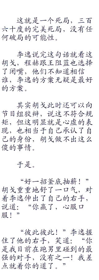 面对这样一个豁出去的胡戈,李逸却没有其他人想象中的慌张,反而是嘴角勾起了一丝微笑。