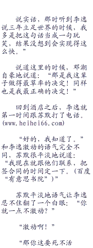 三年前配不上,三年后就配得上?唯一的可能就是公司发展比他个人还要快,等邓潮出演了《乌云背后的幸福线》后,身价肯定要暴涨,但就是这样,李逸依然可以说出这句话,可想而知他是多么自信。
