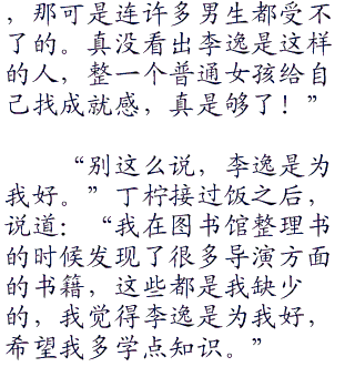 最后,就是shirley的扮演者舒琪了,对于她的表现李逸只有一句话形容:身材不错!