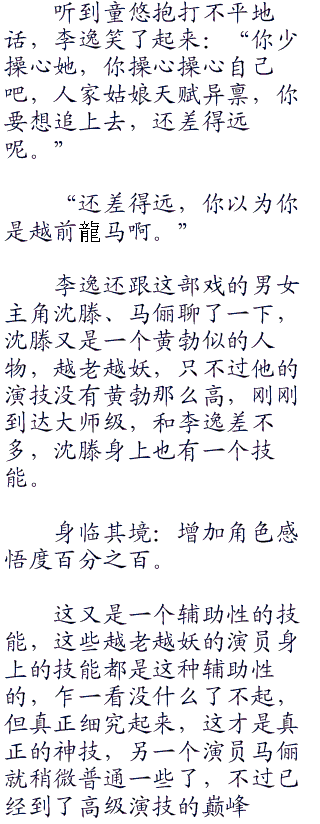其实不用他说李逸也知道童悠已经今非昔比了,高级导演的经验值已经快满了,他现在就缺少一个契机,分分钟就会突破至大师级导演,童悠果然不愧为天生导演。