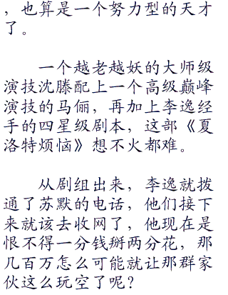 “别着急,等《夏洛特烦恼》拍完之后就该你了。”李逸笑道:“你现在趁着戏不多赶紧休息休息,以后你成天成夜的拍戏,可别跟我抱怨没有功夫休息。”