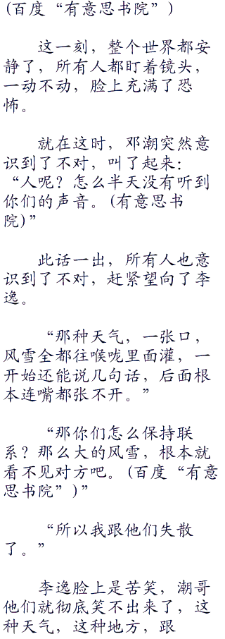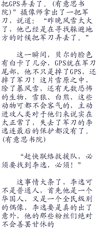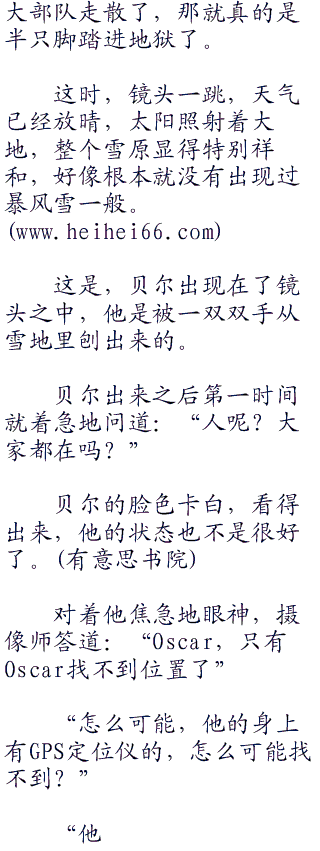 时间在一秒一秒的流逝,风雪也越来越大了,摄像师抓住的镜头都是摇摇晃晃的,无奈之下只能给没人发了一个随身的微型摄