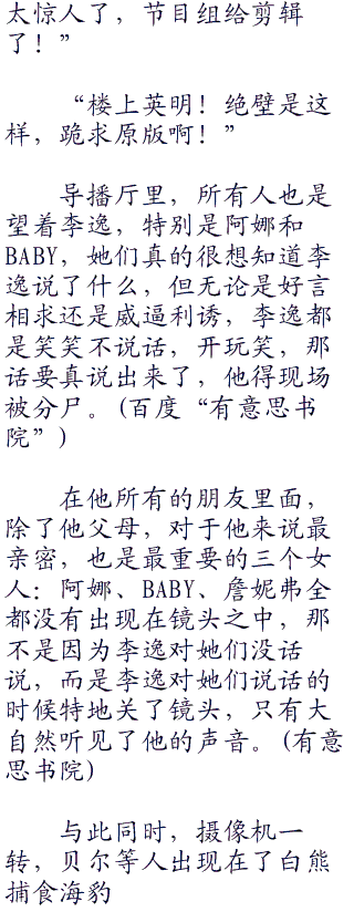 当然,也有人觉得李逸做作,知道自己肯定会得救,故意作秀。