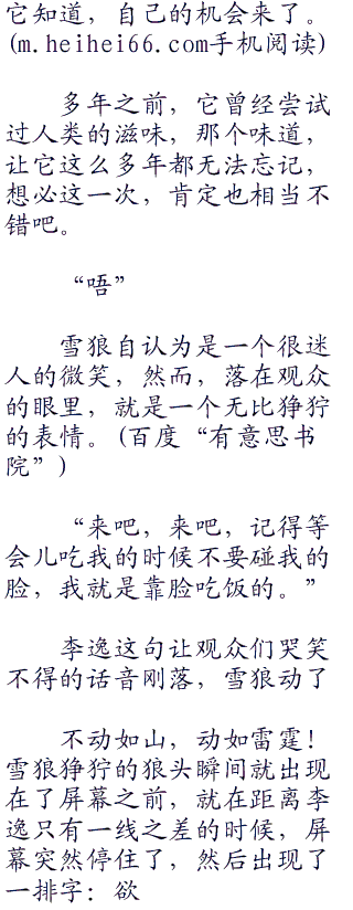 雪狼肯定是不知道这个开启了唐僧模式的人类到底在说什么,但他看到李逸脱掉衣服,气喘吁吁地样子,