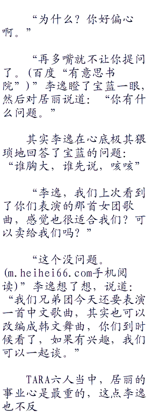 自从她们发售《daybyday》之后,李逸和智妍的联系就少了许多,一是tara正处于上升期,相当忙,二是因为李逸在baby、阿娜、詹妮弗三人之间已经够纠结的了,他也故意躲着智妍,那个汉江之夜,那个初吻之夜在詹妮弗之后,已经变得有些模糊了,你是李逸见异思迁也好,反正在李逸的心中,智妍的身影已经越来越淡了。