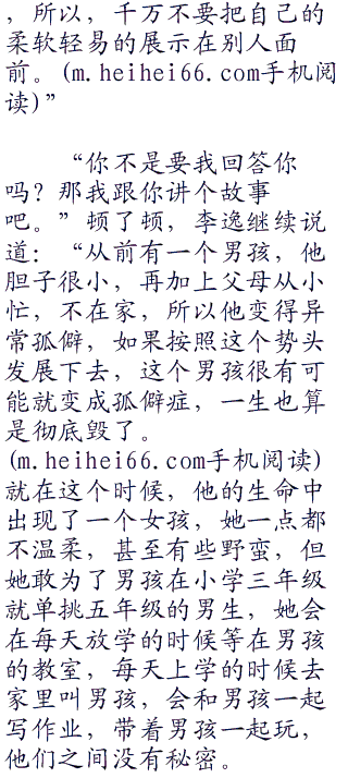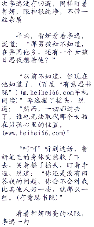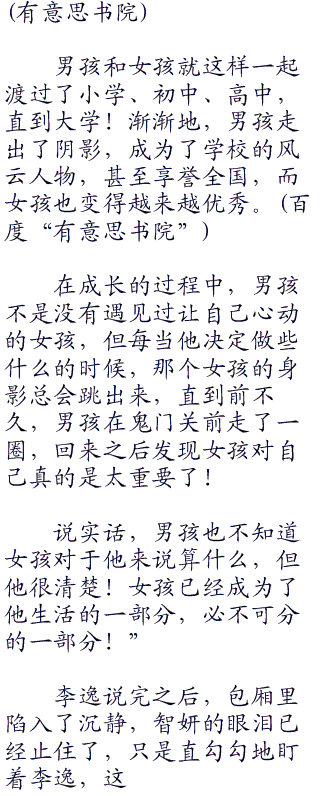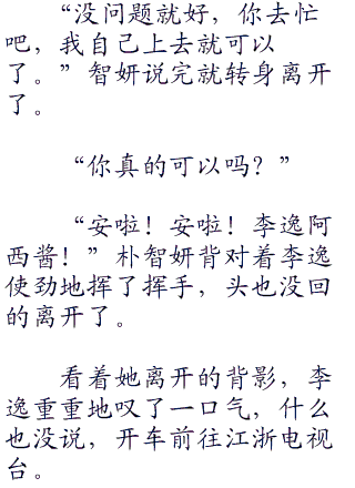李逸的心终究是软了,面对这样的智妍,李逸真不知道心肠如何硬得起来。
