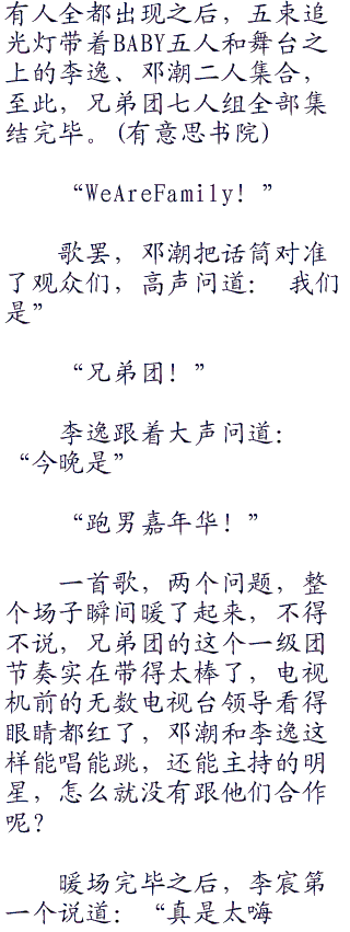 传统迎春晚会这个时候应该是主持人上台对着一堆红红火火的话,但跑男嘉年华这就有点演唱会的意思了,居然先是唱歌,那么这次跑男嘉年华的开幕曲是什么呢?当然就是: