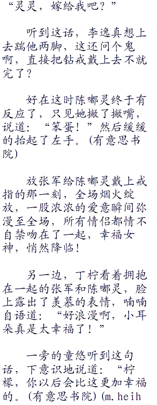 “楼上的别胡扯,姑奶奶已经哭得不行了,小耳朵太幸福了,什么时候也有一个这样的男生这般对我啊。”