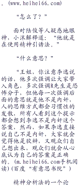 那么,问题来了!他难道就不怕我们知道内奸之后,顺藤摸瓜拆穿他的阴谋吗?记住!这并不是一次游戏,这位r先生是一位真正的恐怖分子,如果大家不能把自己的角色带进去,你们是无法听懂我的话的。”