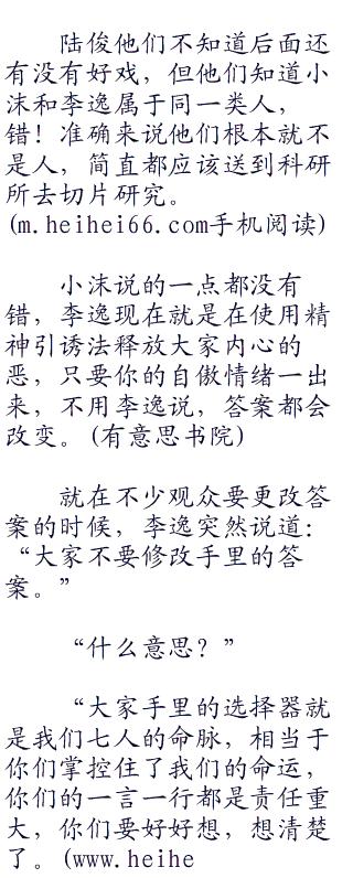 在阵阵轻笑声中,李逸说道:“然而,大家设身处地的想一想,现在的情况是:这位r先生真的是一个恐怖分子,他跟我们七人当中的某个人结盟了,想达到某种不可告人的目的。