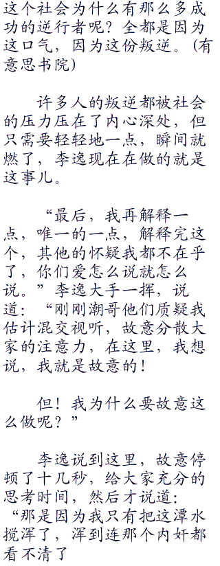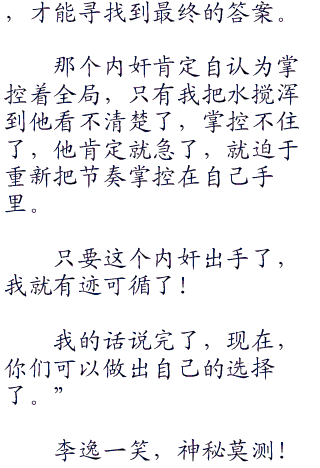 第三次强调之后,李逸继续分析道:“那么最保险的方法是什么呢?就是把我们兄弟团当中对他威胁最大的人剔除掉,这个人是谁呢?除了我,没有别人!