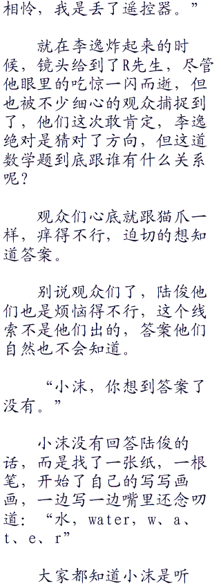 听到这个解释,兄弟团众人恍然大悟之后迎来的就是更加强烈的苦逼感,李逸还说简单,为什么他们听完答案之后一点都不觉得简单呢?这种感觉自己的智商遭到碾压的感觉,真的好不爽啊。