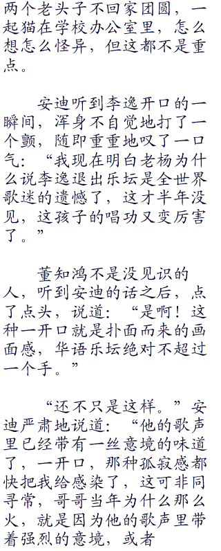 然而,这一切跟李逸都暂时没有关系了,接下来他要去准备和阿娜他们的演出了。
