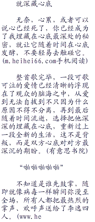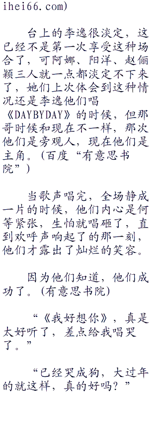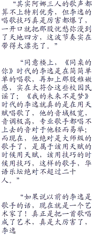 如果说李逸刚才的表现是一场汹涌的激流,直冲人们心头的话,阿娜的声音就是潺潺流水,把这股孤寂传播到了每一个人的心底。