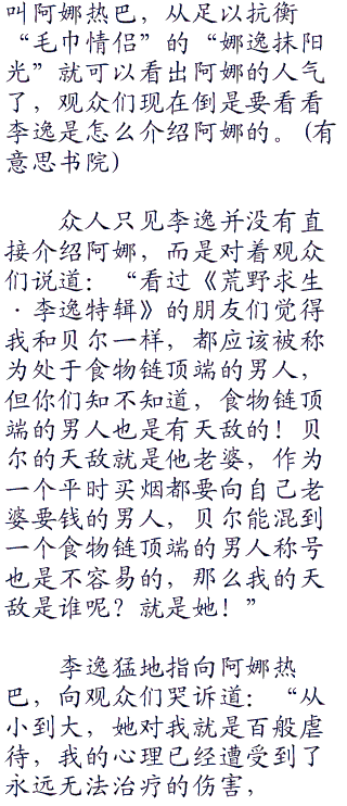 李逸这半指责半撒娇的方式惹得全场都大笑了起来。