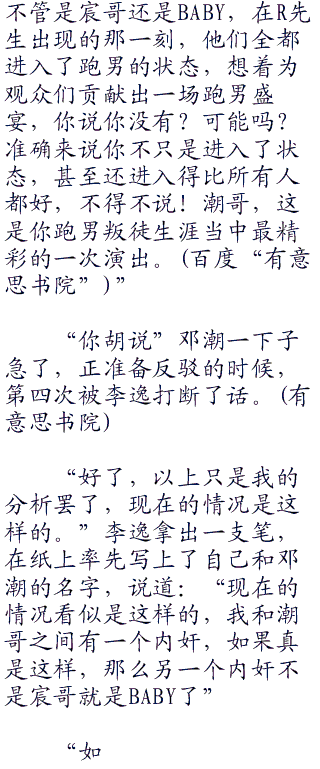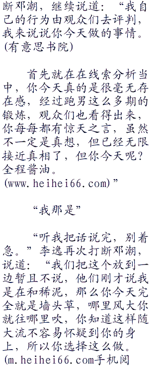 邓潮这一嗓子,大家都反应过来了,他们并没有全部猜错,在邓潮和李逸之中有一个内奸。