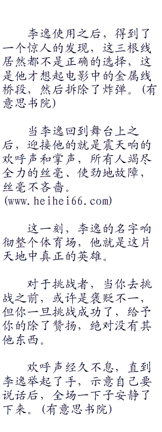 这个问题不只是郑凯好奇,大家都好奇,李逸是怎么蓝色电线下面有一根金属线的呢?又是怎么确定这根金属线才是真正停止炸弹的电线呢?