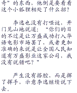 这位老马就是李逸第一次到公司来的时候呛他声的那位老人,说实话,李逸一开始接手世纪光影的时候,公司大多数老人都不是太舒服的,直到李逸以雷霆手段收拾了财务部之后,那些真心希望公司好的老人现在对李逸那叫一个热情。