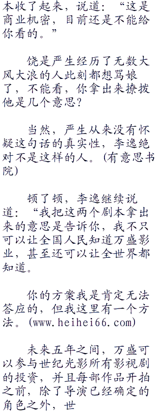严生虽然没有说话,但他不得不承认,李逸猜对了他的想法,或者是猜对了万盛影业的发展趋势。