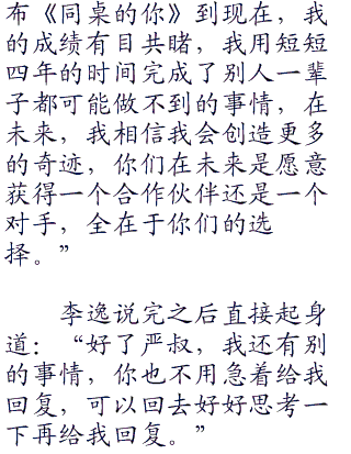 其实他们还有一条路,就是找工作室合作,严生已经打算好了,如果这次跟李逸没有谈妥,他就去找孤立艺人工作室合作,他们万盛出钱,让这些人拍电影,甚至他们已经有人在跟徐征、陈思成进行接洽了。