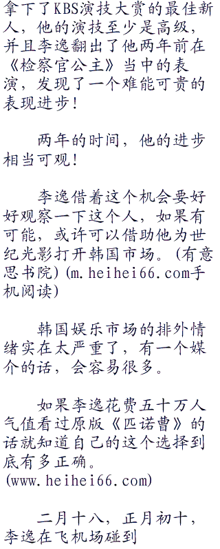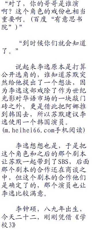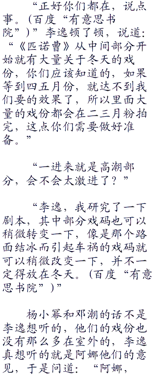 “没看法。”李逸摇了摇头,叹了一口气,说道:“我原本没想这么早就出现在大银幕上的,唉”