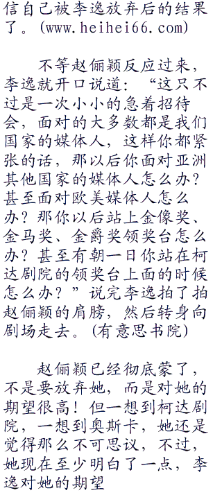 “对不起。”赵俪颖连忙道歉后,说道:“我不应该说棱模两可的话,我其实也知道,但我一紧张,脑海里就一片空白,我我对不起!”