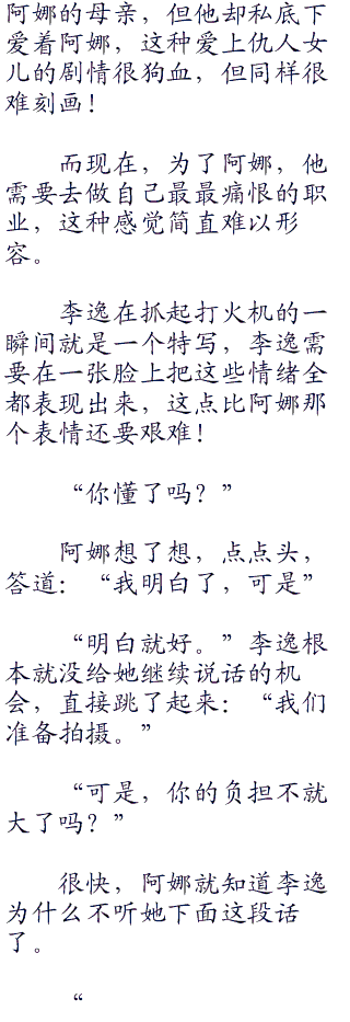 真正进入拍摄之后李逸才发现自己有些想当然了,阿娜的高级演技在这点上面真的是控制不住,微表情的控制在大师级演员来说都是相当难的了。