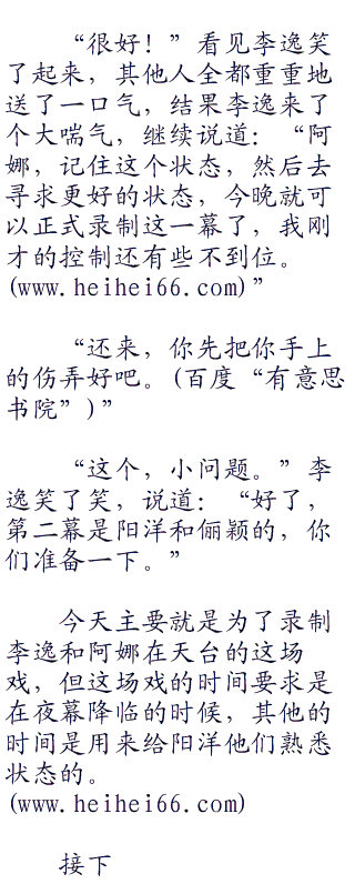 一声令下,李逸走到摄像机前,把自己刚才的表演仔细的看了起来。
