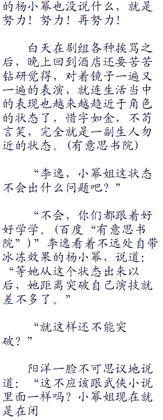 “杨小幂!我最后说一次,高冷,高冷!你现在是一个四十多岁的职场女强人,不是tm见鬼的洛晴川。”