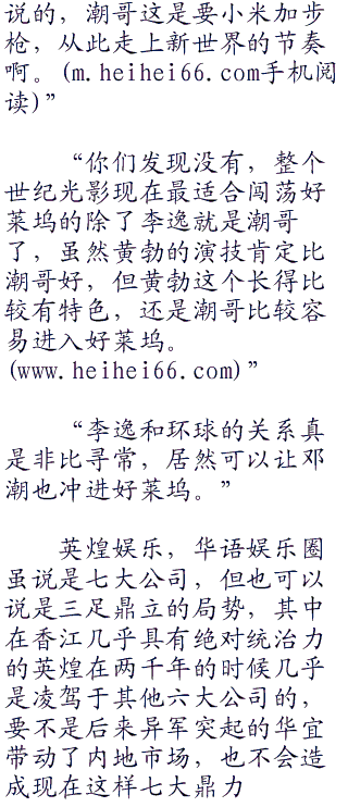 这四个字已经足够说明太多的东西了,这不是哪个方面的合作,而是方方面面的合作,毫不客气的说,这要这份战略合作的合约以前,世纪光影和环球几乎是不分彼此,环球会尽力帮助世纪光影打入欧美市场,而世纪光影将帮助环球狙击好莱坞其他巨头,这是一个捆绑合作!