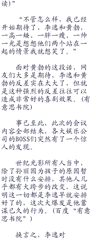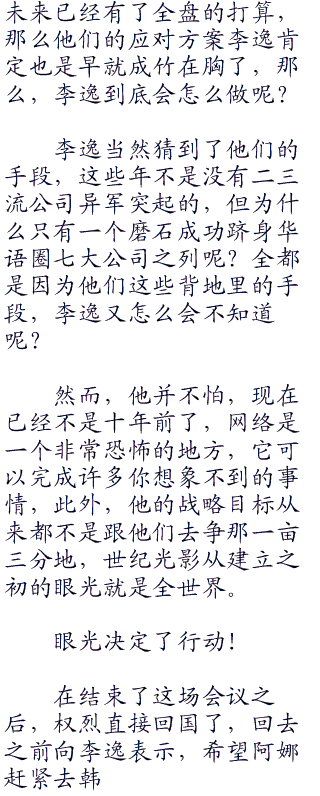 人力资源部,你们去联系那几部比较出名的网络剧,我总觉得李逸走网络上这一招非比寻常,我们不得不防。