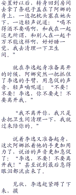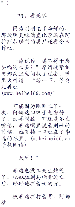 “老板,开玩笑的,不要!不要!你这什么酒品啊,不行还要逞强。”李逸一边去扶阿娜,一边向老板大叫着结账。