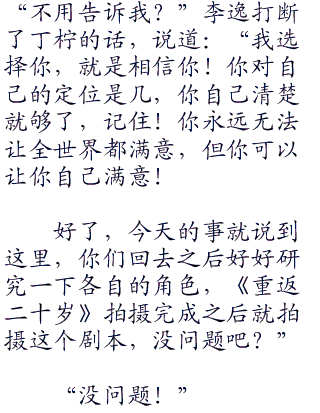 “李逸,我们明白,绝对会贯彻你的要求,好好的锻炼自己的演技的。”